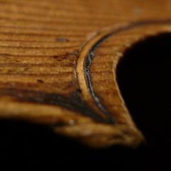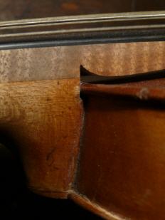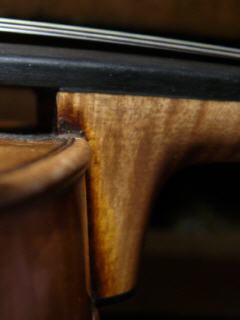 In Anfangszeiten des Geigenbaues war Ebenholz rar. Die Griffbretter wurden nicht massiv gebaut, sondern hatten weicheres Kernholz, welches an den Rändern Ahornkanten hatte und nur mit einem Ebenholzfurnier versehen war.
